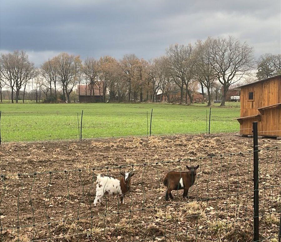 Wegen der Vogelgrippe gibt es auch hier Stallpflicht und die Hühner dürfen nicht zu den beiden hübschen Ziegen