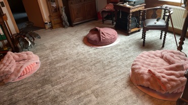 nun liegen unter den 2 Donut Körbchen und dem Sandwich von DogGear die gleichen runden Teppiche